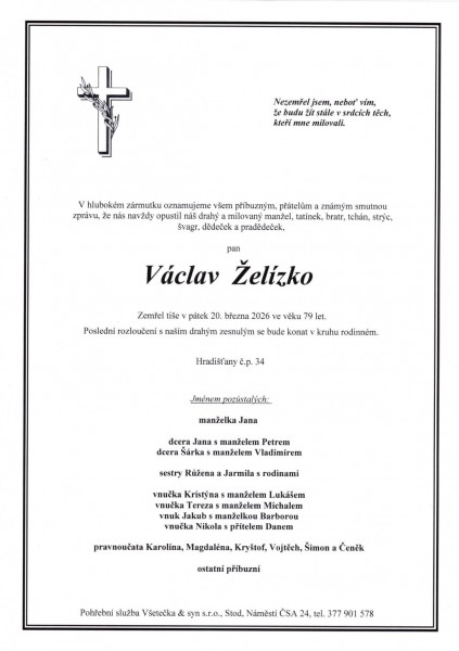 Dne 20.3. 2026 zemřel ve věku 79 let